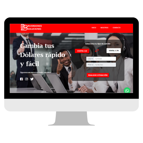 INVERSIONES Y SOLUCIONES B & D S.A.C., es una plataforma digital de servicios financieros, donde puedes comprar y vender tus dólares al mejor tipo de cambio. Somos una compañía registrada en la Superintendencia Nacional de los Registros Públicos (SUNARP) y en la SUNAT con RUC 20610801456 .